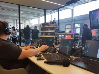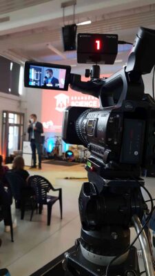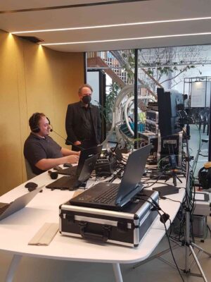 Wir haben bei der Umsetzung des Livestreams unsere 6 Kanal Audio Funkstrecke eingestetzt. Die PowerPoint-Präsentationen haben wir im Livestream sowie auf den hauseigenen Beamer übertragen. Zum Einsatz kamen außerdem 4 Kameras.