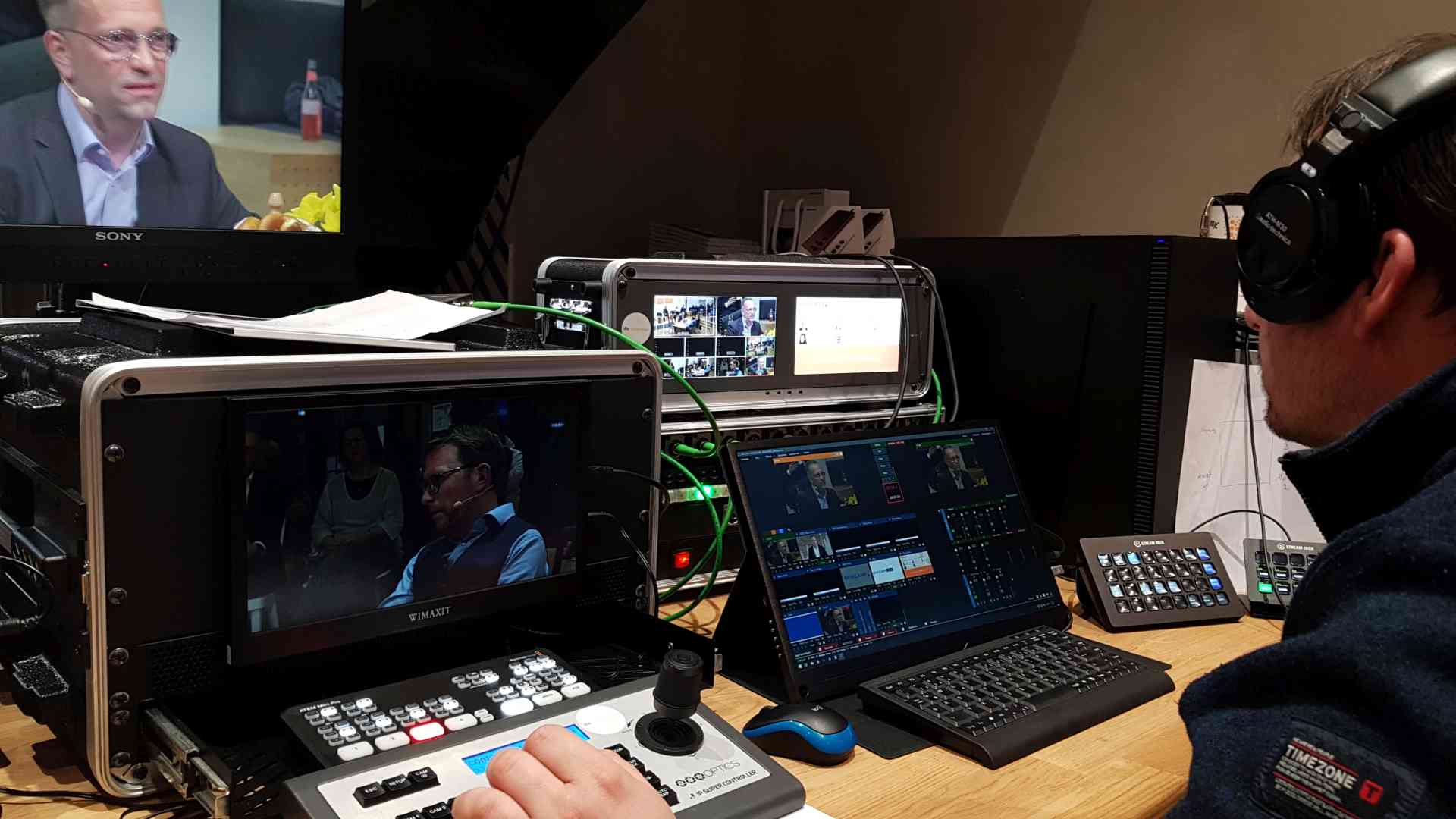 Wir haben diese besondere Situation einer Diskussionsrunde am Tisch mit 3 PTZ Kameras und weiteren statisch eingerichteten Camcordern umgesetzt.