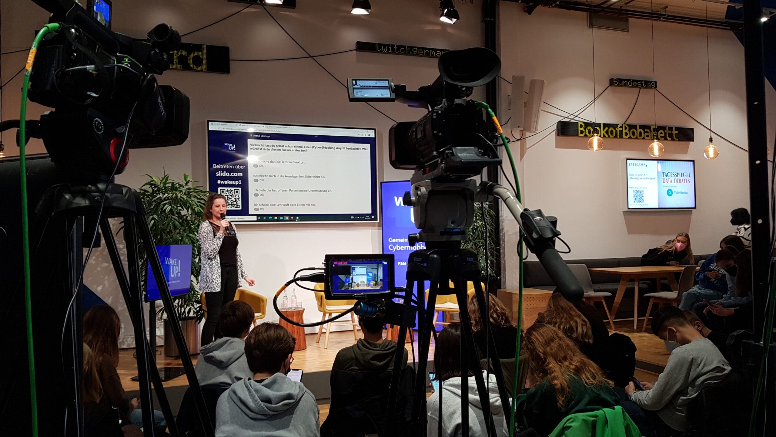Eine Veranstaltung der Initiative „WAKE UP!“ gegen Digitale Gewalt, Cybermobbing und Desinformation. Live aus dem Basecamp Berlin.